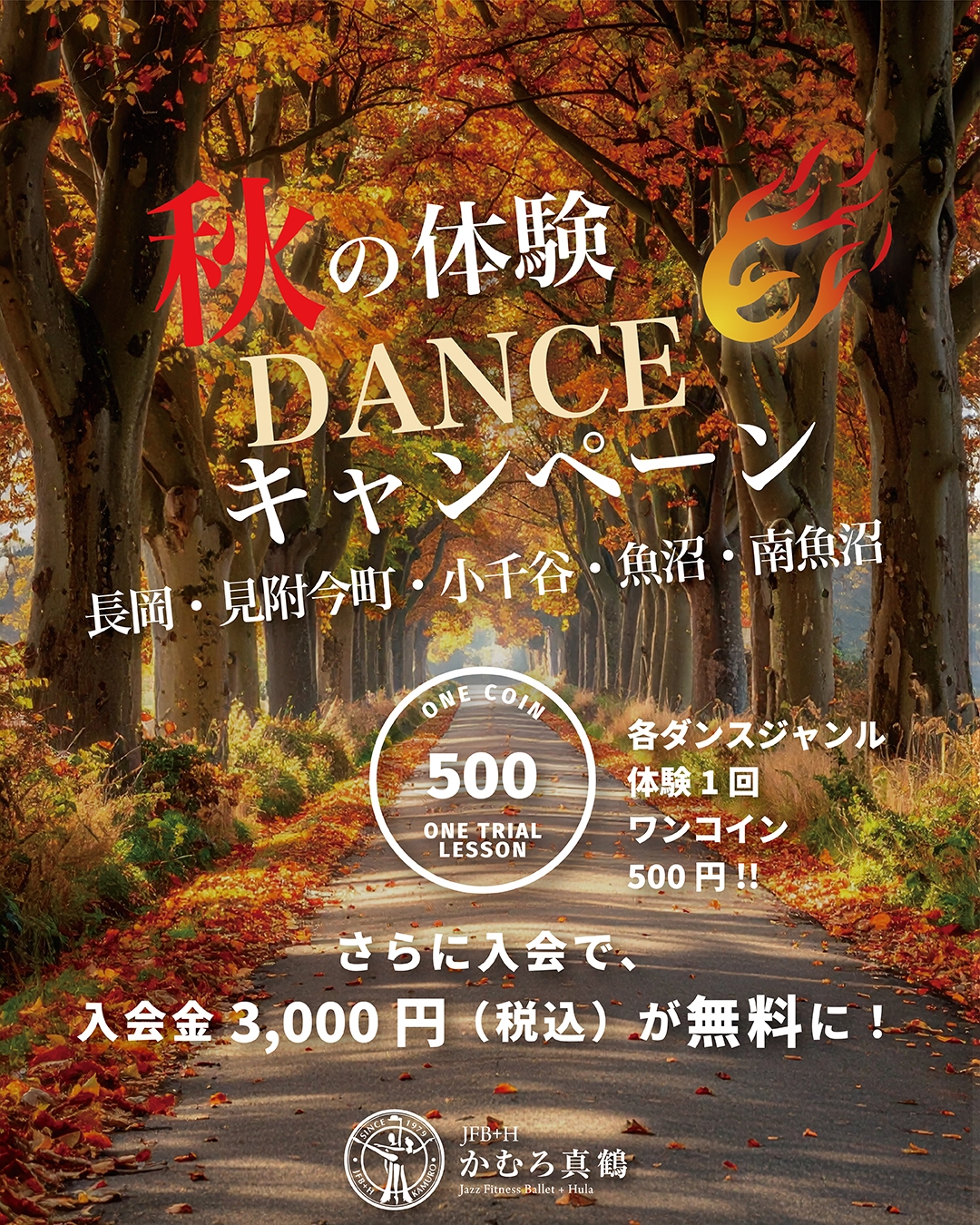 JFB+Hかむろ真鶴の提供する様々なダンスレッスンを体験することができる、「秋の体験DANCEキャンペーン」が今日からスタートします!